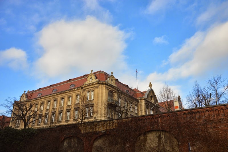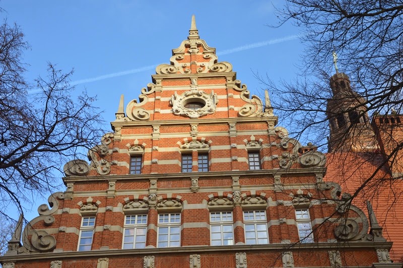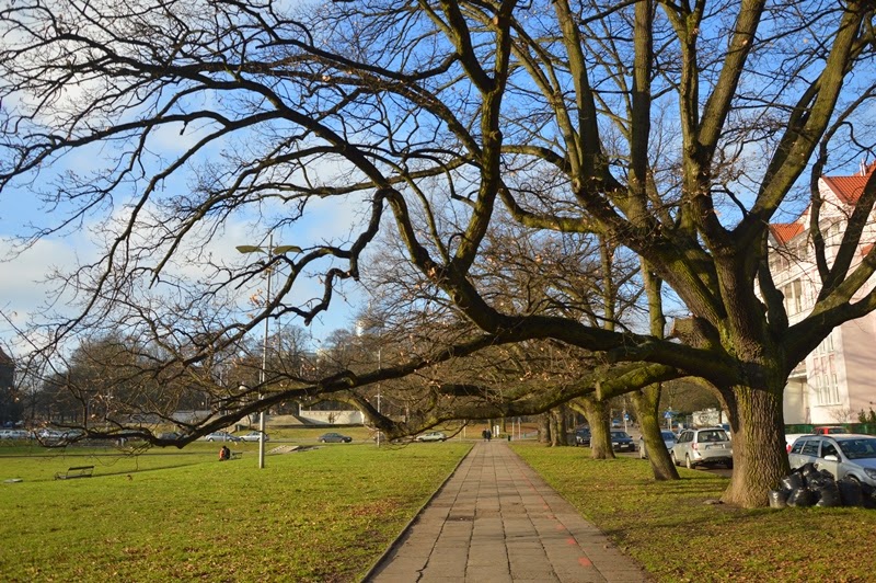 Przy nabrzeżu usytuowanych jest kilka domów z ciekawymi fasadami. Przed Szkołą Morską wyrosła też maleńka choinka.