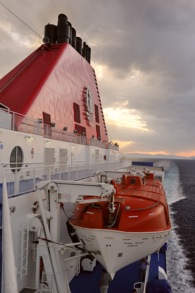 Prawdopodobnie trzeba zapłacić za bilet. W każdym razie jest na promie Minoanu, bo takim płynęliśmy, specjalne pomieszczenie dla psów. Są tam wygrodzone boksy. |