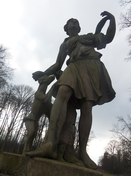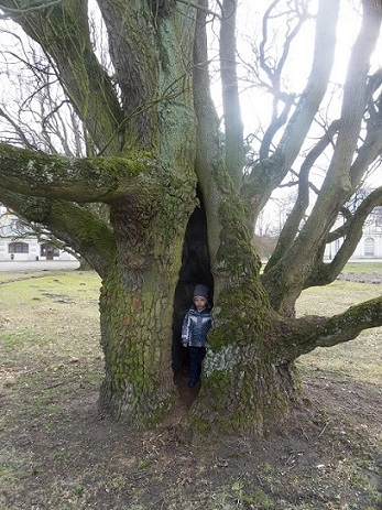 Za bramą piękny podjazd w dali widać pałac. Wjazd tylko dla pracowników stadniny. Goście restauracji muszą porzucać auta na drodze dojazdowej do pałacu. Ale co tam, jedziemy mimo zakazu pod restaurację. Pod budynkiem stoi parę samochodów, idę zasięgnąć języka. Miła Pani z restauracji stwierdziła że nie wolno wjeżdżać na teren ale dla pewności zapyta koleżankę. Po chwili starsza Pani oznajmiła mi że przepisy są po to by je łamać i zezwoliła nam na parkowanie na terenie pałacowym. Zwiedzamy teren w poszukiwaniu wierzchowców. Żadnego na wybiegu, wszystkie w stajniach. Teren ogólnie robi wrażenie jakby nie było żadnego gospodarza. Budynki stajenne proszą się o remont. W jednej ze stajni miłośniczki hipiki pokazały nam boksy gdzie szykowały koniki do jazdy. Eryk był zachwycony. Ze stajni udaliśmy się do parku pałacowego.