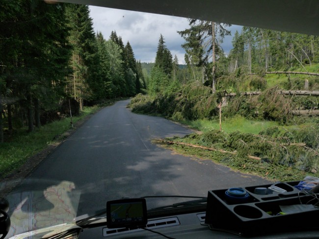 Trasa była wąska i dziurawa – camper źle to znosił ale tak nas prowadził tomtom.