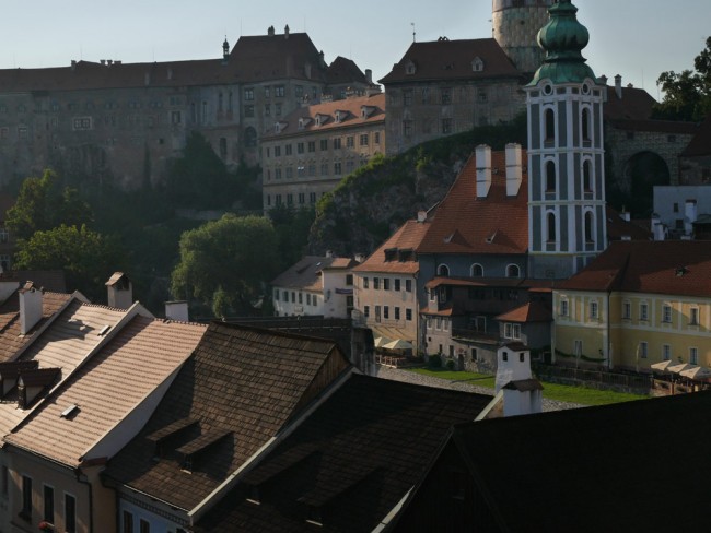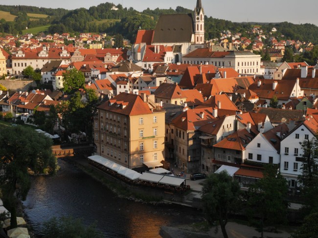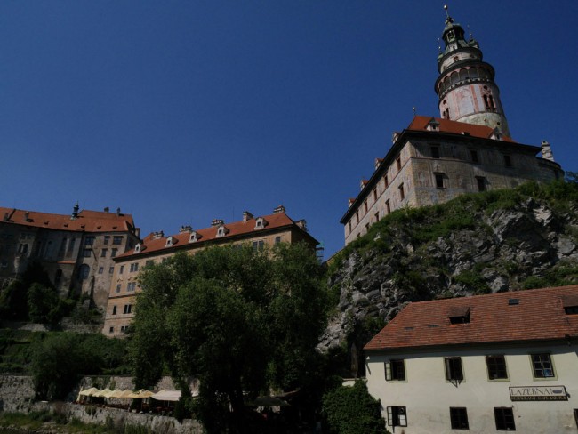 Dojechaliśmy do Czeskiego Krumlowa i mimo że żona wyczytała że to piękne miasteczko to szczenna nam opadła. To jest naprawdę rewelacja. Zaparkowaliśmy praktycznie w samym centrum pod jakimś parkiem i hotelem i pojechaliśmy rowerami zwiedzać miasteczko. Moim zdaniem to taka mniejsza Praga posiadająca niemal wszystkie zalety samej Pragi bez jej wad. Z trudem wjechaliśmy na zamek (ostro pod górę) a w zasadzie złamaliśmy zakaz wjazdu rowerami ale byliśmy z dzieckiem i nie było za bardzo innej opcji. To był strzał w dziesiątkę bo na szczycie były ogrody zamkowe w których miało się odbyć przedstawienie. Nie do końca zrozumieliśmy Panią w kasie ale jedno było pewne – to coś ekstra, jest w parku i kosztuje sporo bo około 100zł na osobę. Żona stwierdziła że warto i kupiliśmy bilety. Ja jednak cieszyłem się z innego powodu – obok był super parking na trawniczku pod drzewami a pani parkingowa nie widziała problemu że będziemy tam nocowali (przedstawienie zaczynało się około 9) – cena za parking to 40 koron czyli 6zł. Mieliśmy mało czasu do spektaklu a auto na dole więc zrobiliśmy sprint i wjechaliśmy drogą której nikomu autem naszej wielkości (lub większym) nie polecamy bo jechaliśmy ostro pod górę między kamienicami i murami – turyści musieli wskakiwać na murek a ja składałem lusterka. Lokalizacja parkingu: https://goo.gl/kicGSW