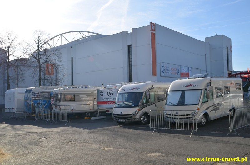 Wychodzimy na zewnątrz, by przejść do pawilonów karawaningowych: