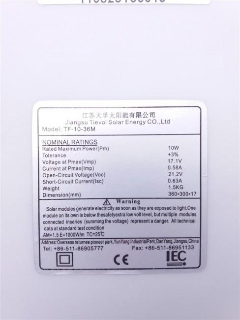 Poniżej zdjęcia solarka z danymi technicznymi umieszczonymi na tylnej ściance.