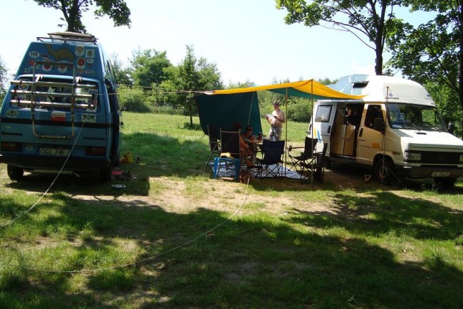 Postawiliśmy kampera, poszliśmy na plażę, gdy wróciliśmy obok stał już namiocik rozbawionej młodzieży chcącej się od razu integrować. Nowo poznani koledzy byli jednak tak uprzejmi, że zapytali czy nie przeszkadza nam głośna muzyka wydobywająca się z głośników ich opla astry. Pomyślałem, no skoro zapytali to znak, że jest pole do dialogu i może gdzieś koło 24 poproszę żeby nieco ściszyli. O godz. 16 koledzy byli już mocno na gazie, była więc szansa na to, że za parę godzin imprezka sama się zakończy. Nastał wieczór, a wraz z nim z każdego samochodu rozległ się głos biesiadnej muzyki. Bynajmniej nie takiej jak śpiewano kiedyś przy ognisku... Widziałem już wiele, ale to co zobaczyłem na tym campingu przerosło moje najśmielsze oczekiwania. W zasadzie można powiedzieć, że ok. godz. 20-tej kwiat polskiej młodzieży był już tak pijany, że na prawdę niewiele brakowało do jakiejś rozruby. Spacer główną alejką z napoczętą półlitrówką w poszukiwaniu kumpla do picia lub dziewczyny do wyrwania - to typowy obrazek. Miejscem oczekiwania na przygodę samotnych poszukiwaczy był jedyny w ośrodku murowany szalet (część męska: 5 pisuarów 1 umywalka) .