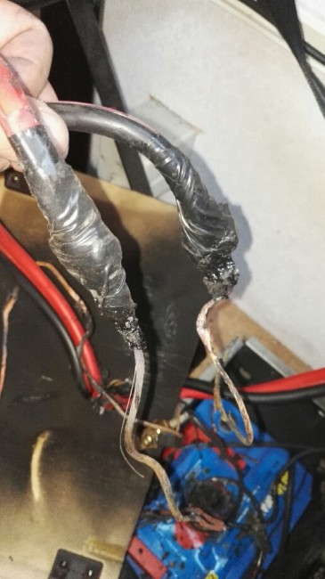 Pomysłowy doboromir użył cienkich przewodów jako bezpieczników, tylko chyba nigdy tego nie przetestował |