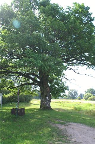 PICT0350 (Small).JPG Dąb przy drodze dojazdowej na którym wierni zawieszają wota dziękczynne. |