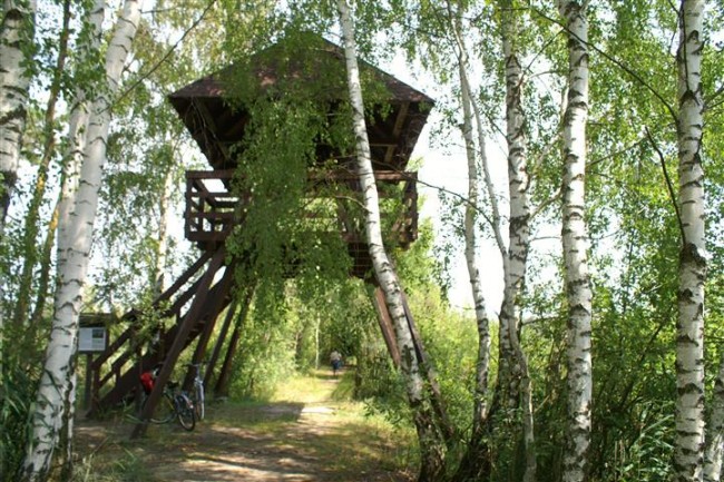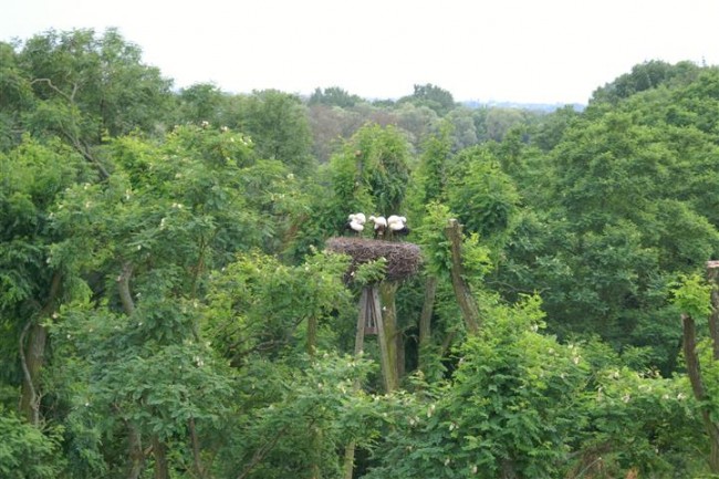 PICT0296 (Small).JPG Z wieży widokowej można podglądać bociany w gnieździe. |