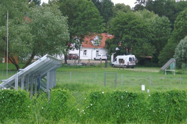 Na nocleg zatrzymujemy się na MOR (Miejsce Obsługi Rowerzysty) które jest równocześnie na oznaczonym polu biwakowym w miejscowości Liszna. Okazuje się, że za budynkiem z miejscami noclegowymi (ciepła woda, WC, kuchnia) jest pole kampingowe (?) wyposażone w dwa stanowiska do obsługi kamperów - każdy po dwa gniazda do podłączenia prądu. Niestety nie jest ono zaznaczone od strony drogi i raczej nie używane. Stanowiska są zasilane w energię elektryczną, ale chyba nie w wodę. Posługując się instrukcją udało mi się stracić 1 ZLOTY ale nie dostać wody do której powiniem mieć dostęp przez 5 minut - wg wyświetlacza, a według instrukcji 50 litrów .