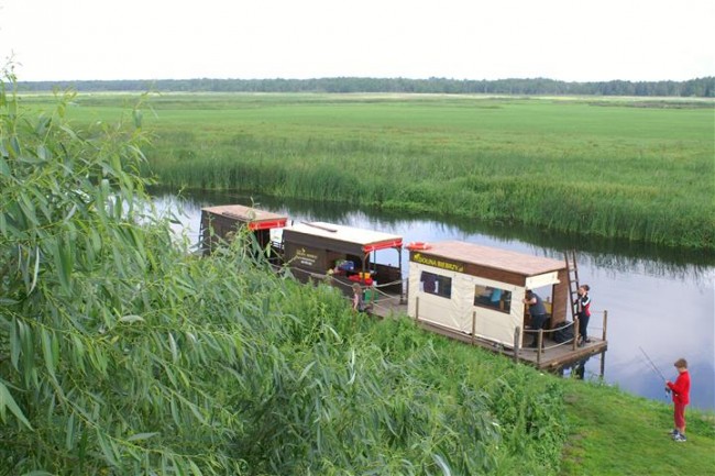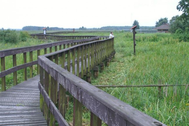 Odpuszczamy stronę wschodnią (byliśmy już przy okazji jazdy do Wilna w Grabarce i samej Puszy Białowieskiej, więc kierujemy się przez Siemiatycze (szkoda, że odwiedziliśmy Drohiczyna, ale co nie ucieknie to nie zginie), Brańsk, Łapy do Waniewa - bardzo miła obsługa w punkcie informacyjnym i wiele materiałów między innymi mapy Green Velo. Z Waniewa drewnianą ścieżką idziemy do Śliwna, a nawet miejscami korzystamy z promów. Z Waniewa jedziemy do Kurowa, gdzie jest Dyrekcja NPN i pole namiotowe (ciepła woda z kolektorów, prysznice, WC siadane, o WC chemie do wyprowadzenia kota nie słyszeli) za całe dziesięć 10 zł (ulgowe po 5 zł) od osoby płatne od 7.30 do 15.30 - koordynaty: N 53.10403, E 22.79683.