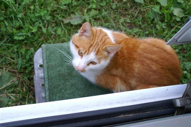 PICT1023 (Small).JPG Na stopniu mieliśmy rano takiego gościa. Zdarzyło mu się wleźć na dach i nieźle nas nastraszyć :) |