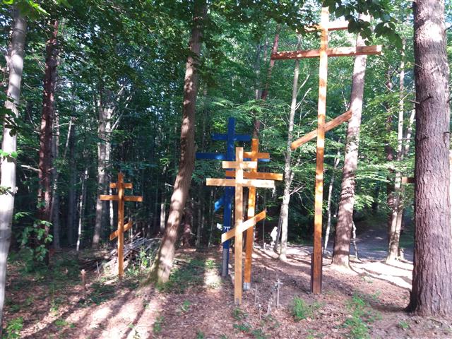 20180531_172622 (Small).jpg Krzyże wotywne ustawiane wokół kaplicy p.w. Matki Bożej na Świętej Górze Jawor - Łemków. |