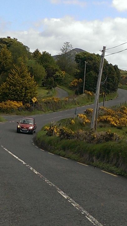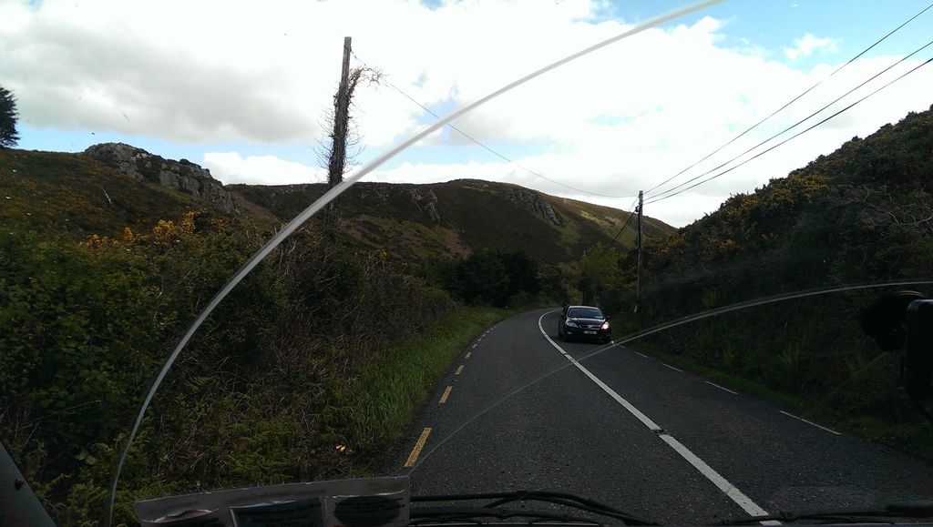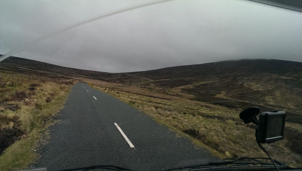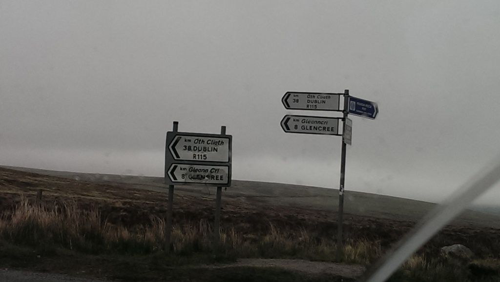 Część drogi prowadziła przez piękne góry Wicklow (Wicklow Mountains) przez sam środek. Droga była wąska, po jednym pasie ruchu. Oczywiście żadnych barierek Puste góry, pokryte wrzosem i gdzieniegdzie drzewami nas zachwyciły. Na trawie wypasały się owce, czasem przy samej drodze, czasem na drodze. Widzieliśmy też wierzchołki dotykające chmur Pomimo szarości, jaką robiły ołowiane chmury, widoki i tak były niesamoite!