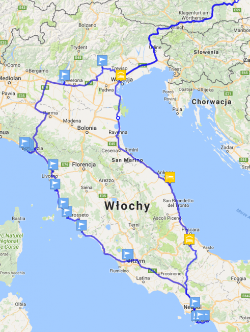 2. Jaką trasę po Włoszech obrać (tu z Waszego doświadczenia - co polecacie)?