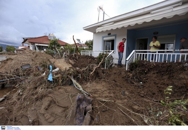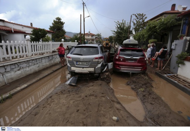 Τις πληγές τους μετρούν οι κάτοικοι στα Βρασνά και το Σταυρό Θεσσαλονίκης, αλλά και στη Χρυσούπολη Καβάλας. Η εικόνα μετά το πέρασμα της νεροποντής που χτύπησε τις περιοχές χθες και σήμερα το πρωί, είναι σοκαριστική. Οι κάτοικοι σε απόγνωση, αντικρίζουν εικόνες βιβλικής καταστροφής και προσπαθούν να σώσουν ό,τι μπορούν. Βρασνά, σαν να πέρασε τυφώνας Στα Βρασνά πραγματικά οι εικόνες είναι πρωτοφανείς. Η παραλία σήμερα μοιάζει σαν τις περιοχές όπου μόλις έχει περάσει τυφώνας. Δρόμοι... εξαφανίστηκαν, οι υπόγειοι αγωγοί βγήκαν στην επιφάνεια, η παραλία... διαλύθηκε, οι αυλές των σπιτιών και οι δρόμοι έχουν γεμίσει με χώματα και μπάζα. Μάντρες κατέρρευσαν, ενώ και ένα σπίτι υπέστη ανεπανόρθωτες ζημιές, καθώς προφανώς υποχώρησε το έδαφος και γκρεμίστηκε. Χαρακτηριστικές της... μανίας του νερού που κατέβαινε χθες προς την παραλία των Βρασνών είναι το γεγονός ότι... ξερίζωσαν μια πισίνα! Επίσης εντύπωση προκαλεί η εικόνα ενός αυτοκινήτου που παρασύρθηκε από τα νερά, κατέληξε στην παραλία και βούλιαξε στην άμμο και ενός ακόμη που θάφτηκε μέσα στη λάσπη. Πηγή: www.inkefalonia.gr