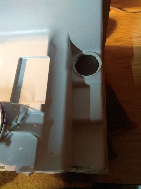 Toaleta Thetford C-402, z tego co widzę, wykonana tak by można było wkładać kasetę z lewej lub prawej strony, po przezbrojeniu. Wszystko udało mi się poodwracać, ale wlewu wody nie mogę wyjąć. Korek z drugiej strony wychodzi po obrocie o 90*, tam są tylko dwie łapki. A wlew ma kołnierz dookoła i nie można go odłączyć.