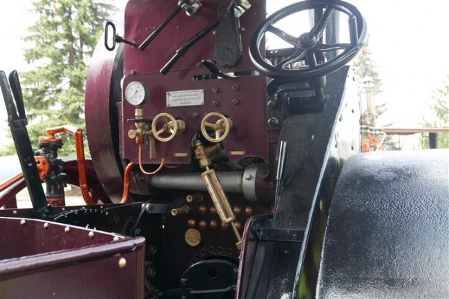 P1050393 (Small).JPG Wyposażenie kotła parowego Firmy Clayton and Shuttleworth -manometr, wodowskaz, drzwiczki paleniskowe. |