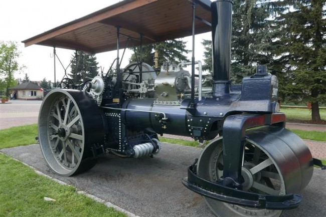 P1050407 (Small).JPG Walec drogowy parowy SKODA wyprodukowany w 1921 roku w Pilznie w Firmie Zakłady Skoda Spółka Akcyjna - Czechosłowacja. |