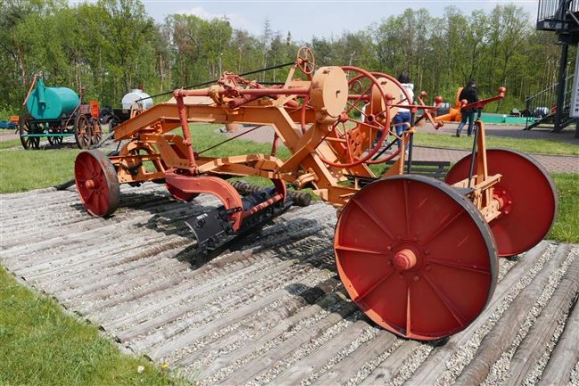 P1050454 (Small).JPG Równiarka ciągniona BPW-60 w roku 1948 w Peine w Niemczech. Stosowana do wyrównywania i profilowania terenu, rowów, skarp, wyrównywania materiałów drogowych, a nawet odśnieżania. |