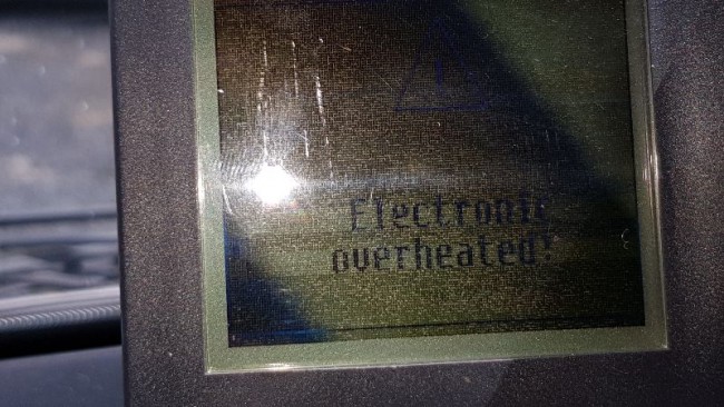 Na wyświetlaczu sterującym zasilaniem zabudowy pojawia się napis: "elektronic overheated" - tłumaczenie w/g googla: elektronika przegrzana.