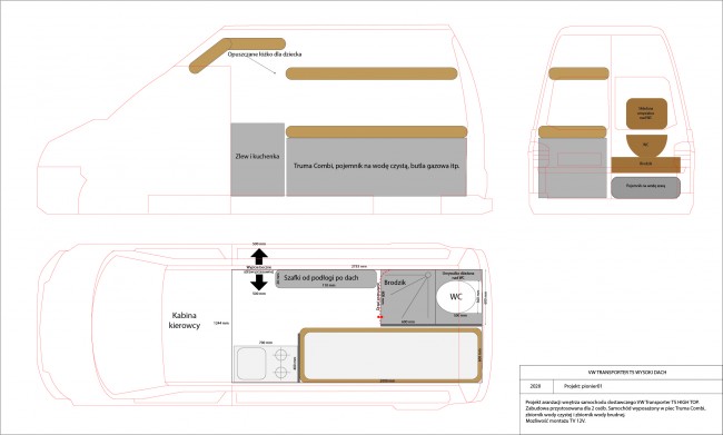Wtedy otrzymujemy VW Transportera T5 podwyższonego z 3 łóżkami dla dorosłych i jednym dla dziecka.
