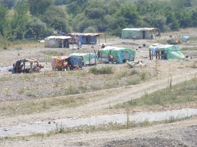 albania1.jpg wzdluz rzeki mozna spotkac takie obozowiska bardzo ubogiej ludnosci |