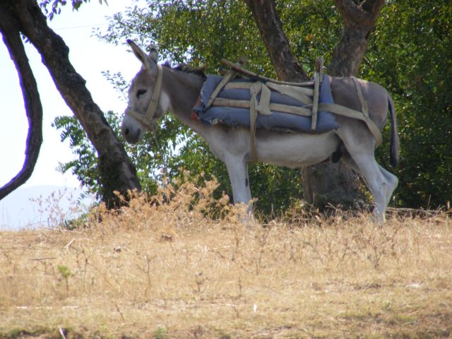 albania6-transport w gorach.jpg i srodek transportu w gorach -tu akurat odpoczynek w cieniu osiolka |