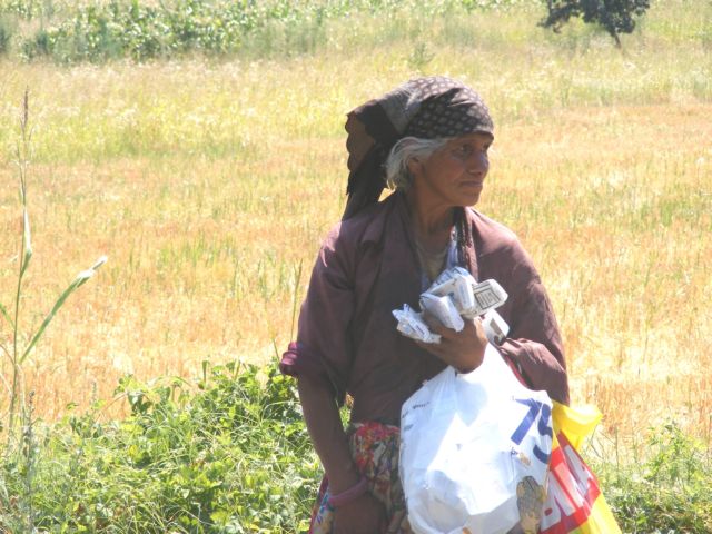 bulgaria biedna kobieta zbiera na trasie do macedoni.jpg