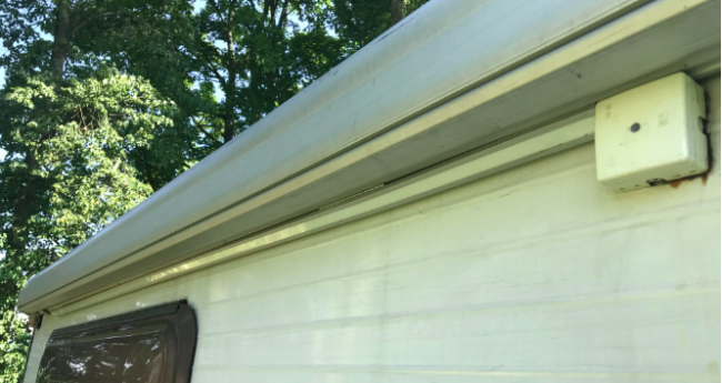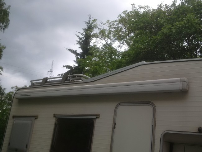 Poniżej na zdjęciach - jak to wygląda u nas oraz przekrój przez mocowanie - pomarańczowa jest ściana kampera, szara - dolna ścianka obudowy markizy, czerwony - nit. Przepraszam za niestaranny rysunek