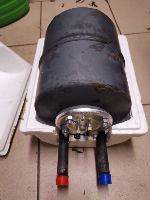 Auto odbieram dopiero w przyszłym tygodniu, jednak części zaczęły już spływać. W tym bojlerek, bo nie nazwę go bojlerem z racji pojemności - 5L. Fajny, nie trzeba ciąć na pół i w cenie grzałki na 230 V. Do tego dokupiłem https://allegro.pl/oferta/elastyczna-rura-ze-stali-nierdzewnej-flexo-dn12-10570275817 po włożeniu do zbiornika zakuję ją u kogoś z okolicy.