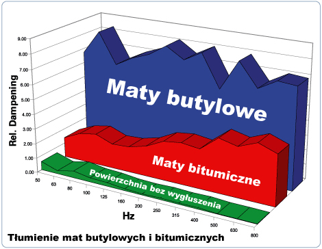 W porównaniu do mat czarnych asfaltowych nie trzeba podgrzewać, nie kruszą się, skuteczność potwierdzona badaniem akustycznym w Przemysłowym Instytucie Motoryzacyjnym.