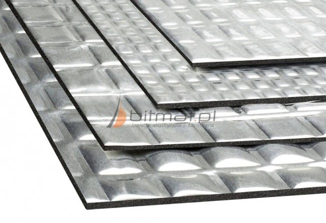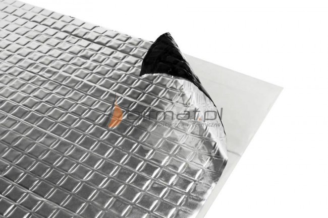 Mata wygłuszająca do samochodu alubutyl 2mm stosowana na blachy w celu eliminacji drgań, buczenia, dudnienia. Dużo skuteczniejsza niż mata bitumiczna, ponieważ guma nie zmienia tak właściwości jak bitum(asfalt) podczas zmian temperatury. Dzięki dużej plastyczności uszczelnia oraz izoluję termicznie poprzez grubą folię aluminiową 0,1 m
