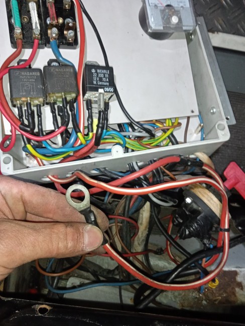 Czy może mi ktoś powiedzieć do czego ten hebel jest podłączony? Postaram się o lepsze zdjęcia, ale idzie przewód do aku. socjalnego (dodam, że są panele słoneczne, nie wiem czy to tu istotne), drugi jest przytwierdzony do karoserii, oraz, z pamięci, dwa kabelki cienkie (niebieski i czerwony) idą do skrzynki obok gdzie jest woltomierz.