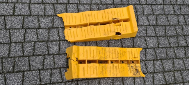 Ktoś kiedyś pisał na forum że pod te plastiki dokręca deseczkę ze sklejki wówczas cała konstrukcja lepiej i równomiernie przenosi siły. Niestety nie próbowałem tylko kupiłem drugi zestaw Fiamy i wożę trzy sztuki. Jakby ten najbardziej zniszczony najazd padł, mam na podmianę. |