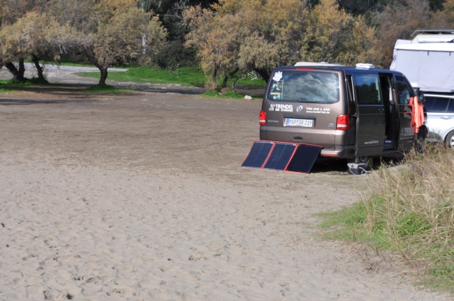 Co zauważyliśmy już na Glyfadzie , i pózniej wszędzie indziej, to każdy wystawia elastyczne panele przed kampera, w lecie tego nie widać z racji kąta padania promieni słonecznych zapewne. .