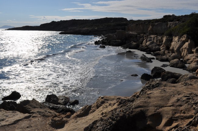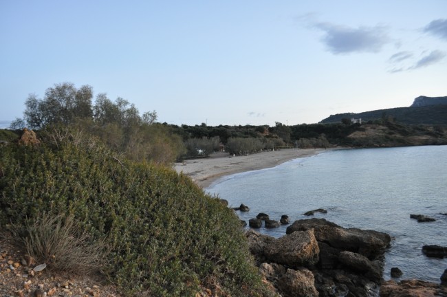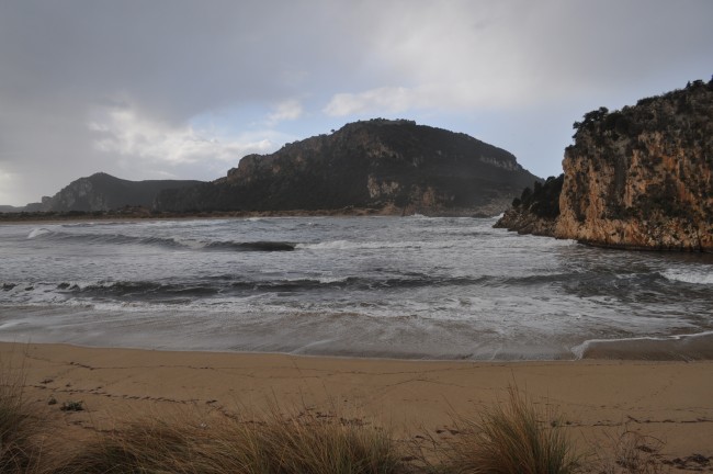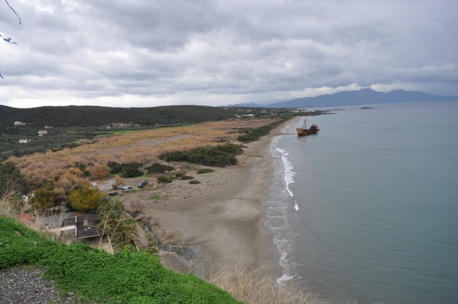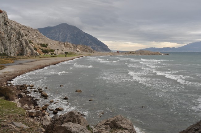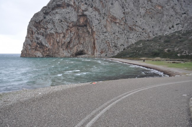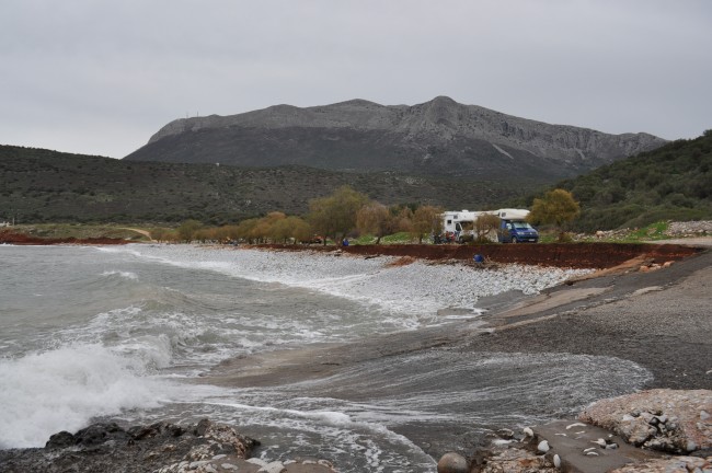 26 grudzień znów przywitał nas pogodą taką sobie, przynajmniej nie żal było posiedzieć w aucie . Jeszcze tankowanie auta i wody , bo pózniej będzie cięzko ze stacją paliw i w głąb Mani. Pogoda znów deszczowa , przejezdzaliśmy przez miejscowość Vathia którą myślałem żeby zobaczyć, ale deszcz zniechęcał do tego. Przez Vathie tylko przejechaliśmy, nigdy w niej nie byliśmy więc chcieliśmy wyjść i zobaczyć... ale nie udało się. Na półwyspie Mani zauważyliśmy dopiero jak Grecja , a właściwie Peloponez jest zielony, w lecie wszystko wypalone słońcem, w zimie wręcz zielono , soczyste zielone kolory drzew , krzaków czy w końcu trawy, trawy której w lecie nie widać. Az dziwnie było, surowy krajobraz Mani, który pamiętaliśmy z lata już nie był tak surowy przez bujną zieloną rośliność. Sam "paluch" Mani wart jest odwiedzenia jak ktoś nie był , przez właśnie krajobraz , zabudowy kamienne , domy z wierzyczkami obronnymi, no to trzeba zobaczyć. Na Mani jest fajna plażyczka Ampelo, niestety nie podejmujemy próby dojazdu tam ponieważ przejeżdza się przez miejscowośc z wąskimi uliczkami i ciasno poparkowanymi tam autami... W lecie byliśmy i przejazd nie był łatwy, choć ja się takimi rzeczami niezbyt przejmuje , to żona cały czas w stresie była czy stamtąd wyjedziemy. Ja znów zawsze zdania jestem, ze jak się gdzieś wjechało to się wyjedzie. Tu miałem na uwadze jednak , że jak utkniemy gdzieś to w dwa kampery a nie jeden. Odpuściliśmy Ampelo, ale mogę powiedzieć , że plażyczka jak i zabudowania obok Super. Mani objechaliśmy z dłuższym postojem po drodze. Pogoda... mogłaby byc lepsza. W końcu dojechaliśmy do trasy Aeropoli-Gythio , w lewo do Aeropoli cale 15km , przeciez to prawie koło Dirou, my zrobiliśmy 5 razy tyle do tego miejsca, albo i może więcej, ale co tam, przecież mamy zwiedzać a nie patrzyć na kilometry . Mijamy Gythio , docieramy na Glyfade , sporo kamperów , zajmujemy miejsca jedyne z widokiem częsciowym na morze i akurat się zaczął robić zmierzch. Juz o godzinie 17 było ciemno jak w starej ciemnej piwnicy . Na drugi dzień idziemy w kierunku wraku, w sumie bardziej nas zainteresowała ilośc muszli na plaży , i to takich większych muszli jak sam wrak, bo wrak ileż można oglądać... rozpoczeło się zbieranie muszli... Jeszcze tego samego dnia ruszyliśmy dalej , bo to raczej miejscówka na ewentualny krótki przystanek na chwilę , niż na dłużej.