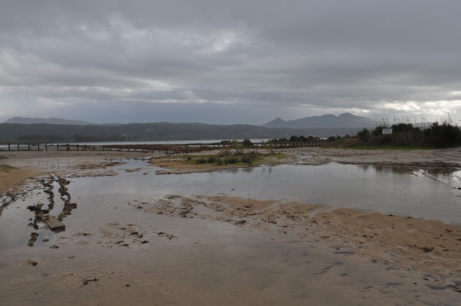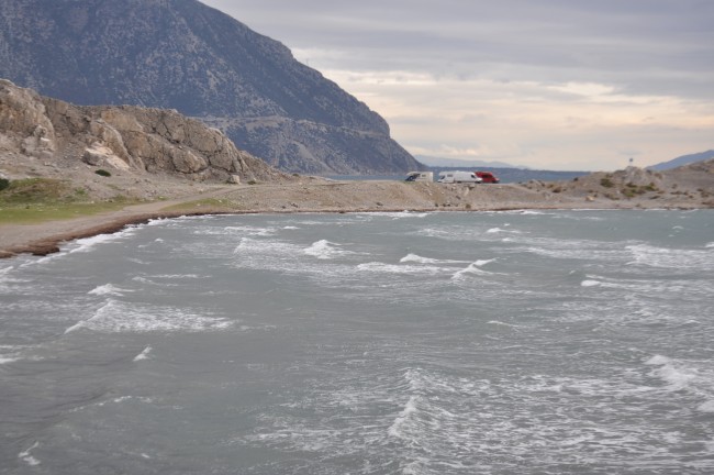 Więc mamy poniedziałek , 23 grudzien , Kato Vasiliki , praktycznie zawsze przed promem tam robimy nocleg , i tym razem też tak było. Dojechali kolo godziny 10-tej znajomi , przerażeni tym co w nocy w gorach ich spotkało , tą zimą której się nie spodziewali w Grecji , aż się zatrzymali gdzieś tam bo juz nie dali rady jechać w tych warunkach w nocy. Przywitanie , przejście się po okolicy no i w drogę do Attirio na prom. Pogoda pod psem , ponuro , wietrznie , zimno, ale jedziemy , przed Attirio zaczyna znów o sobie dawać znać deszcz, na szczęscie na krótko. Na promie można wyjśc z auta, swego rodzaju atrakcja , kilka fotek z promu , 20 minut rejsu i jesteśmy w Patras. Pierwsze co to jakieś zakupy by się przydało zrobić na ziemi Greckiej, bo nie było na to okazji , obieramy dobrze nam znany Sklavenitis. Wychodzimy ze sklepu a tam zaczyna znów padać , ruszamy na zachodni peloponez. Zanim dobrze wyjechaliśmy z Patras to co od kilku dni nam towarzyszy , deszcz który przekształca się w ulewę i wichurę przy okazji, kampera chce zmieść z drogi ale jedziemy. Gdzie... może Elea, ale przecież leje, jedziemy tam gdzie nie pada, może gdzieś tak jest. W sumie w pewnej chwili zwątpienie , nie taka Grecja miała być zimą... może lepiej do domu wrócić , co za różnica , przeciez pogoda będzie taka sama. Ale jedziemy dalej. Po drodze kilka zatorow , poprzewracane drzewa na drodze , straz pozarna je usuwająca , kiepsko , po prostu kiepsko. Chcieliśmy zalodze drugiego kampera pokazać Olimpię , ale to też warunki pogodowe nie pozwalały na to , zresztą przy takiej pogodzie czowiekowi się odechciewa juz wszystkiego w pewnym momencie. Na wysokości jeziora Kaiafa zaczeło się ściemniać , ale też i przecierać. Po drodze tankowanie jeszcze i decyzja , jedziemy na Voidokilię. Pani na stacji co nalewala paliwa zdziwiła się i stwierdziła , że pierwszy raz widzi diesla napędzanego gazem . Tankowaliśmy diesla , ale wlew do gas banka jest pod klapką wlewy paliwa . Na Voidokilie dotarliśmy jak to my , w nocy... przeklęty mostek trzeba było przejechać , o którym pamiętałem ale i tak oczywiście hakiem zaryłem. Na parkingu przed plażą wyszliśmy sprawdzić stan nawierzchni , czy jest grząsko , nie było , było twardo , więc wjezdzamy , auta nawet się nie zapadły więc jest ok. Idziemy spać. W nocy leje , wieje , słychać szum fal. Rano okazuje się ze stoimy w.... jeziorze... woda morska przez wysokie fale przelewala się na parking. Posiedzieliśmy do południa , woda trochę z parkingu spłyneła , kolega stojący obok wyjechal bez problemu , to pora na mnie. Próbuje ruszyć a tu się kopiemy , kazdy obrot koła auto siada niżej.... i dupa.... Juz jak rano zobaczyłem jak kola się zapadly to wiedzialem ze lekko nie będzie. Ale co tam, ja co wyjazd muszę się gdzieś zakopac , nie może być lekko , przed wyjazdem letnim zaopatrzylem się w trapy , więc troche podkopaliśmy , trapy podłożyliśmy i nawet nie poczułem , auto wyjechało odrazu... oczywiście z pomoca "pchaczy" z tyłu . Ale bez trapów byśmy tam utknęli chyba do lata :D. Jest wtorek , 24 grudnia , wigilia , stwierdziliśmy , że tu nie chcemy wigili spędzać , tylko gdzieś z widokiem na morze z kampera. Zdecydowaliśmy ze jedziemy na Dirou na Mani , w planie miałem odwiedzić jaskinię w pobliżu , 3 razy będąc na Dirou się nie udało , to może teraz się uda . Niestety i tym razem się nie udało, ale to nic , powód na kolejny powrót nadal jest. Wyjazd z Voidokilii i znów ten mostek... znów zarycie hakiem... Drugi raz tu byliśmy i chyba przez ten mostek sobie kolejne razy odpuścimy. Jedziemy dalej. Dirou nas zawiodło , widać jakiś sztorm musiał być , na plaży pelno śmieci z morza , niektóre drzewa przy lini brzegowej podmyte az do korzeni. Kamperów kilka stało, więc i my znależliśmy miejsce i zostaliśmy tam na wigilię. Pogoda juz była duzo lepsza , od rana w wiekszości bez deszczu , ciepło 15 stopni i wiekszośc dnia słoneczna , w końcu lepsza pogoda niż do tej pory. W drodze na Dirou jedynie koło Kalamaty chwilę popadało , ale tragedii nie było. Na Mani słońce , przeplatało się z chmurami ale nie padało, a to najważniejsze , w miare ciepło 15-16 stopni. Pogoda na pewno lepsza niż w PL , ale nie jakaś rewelacyjna. Na tej miejscowce siedzimy jeszcze cały pierwszy dzień świąt, pogoda podobna jak dzień wcześniej, wieczory zimne , na zewnątrz nie da się długo wysiedzieć, ustalamy ze na następny dzień ruszamy na plaże Glyfada z wrakiem Dimitriosa. My juz byliśmy kilka razy przy tym wraku , ale kolega chciał go zobaczyć. Ustaliliśmy , że pojedziemy ale objeżdzając cały półwysep Mani , aby pokazać im "inność" tej częsci Grecji a dokładniej Peloponezu do reszty.