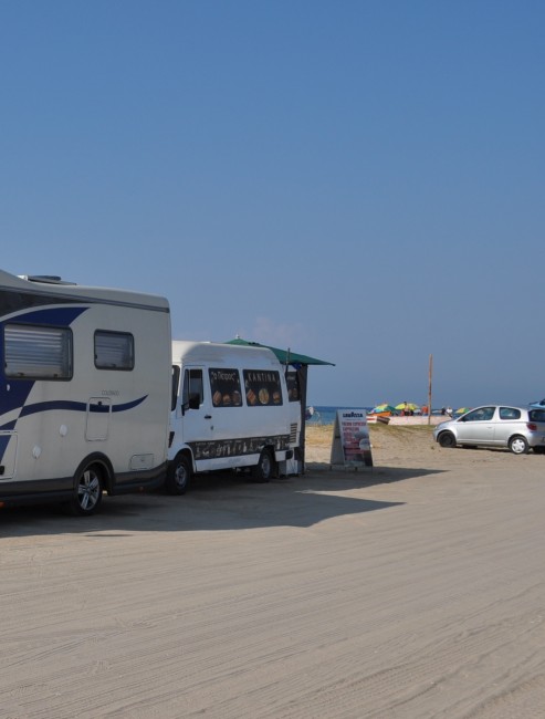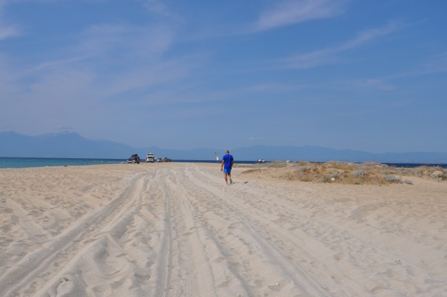 Idea tego wyjazdu była taka , żeby dojechać na miejsce i w miare upływu czasu siedzieć w jednym miejscu cały tydzień , w sumie prawie tak wyszło. Po plaży Lerissos wróciliśmy na Komitse. Jeszcze spokojnie dwa dni mozna było postać tam. Nic się nie zmieniło , Ci sami Grecy jak w zegarku koło nas w tych samych godzinach , zero kamperów , praktycznie w najbliższej okolicy zero ludzi. Przyszedł czas na wyjazd, ruszyliśmy póżnym popołudniem w kierunku Salonik , jeszcze tylko dotankowanie wody pod Lidlem i tym razem inną trasą bo mieliśmy w planie gdzieś znaleść miejsce na nocleg w okolicy środkowego palucha. Niestety , objeżdzając wiele miejscówek nie trafiliśmy na nic ciekawego , dojechaliśmy tym sposobem do pierwszego palucha , jak się okazało na oparach paliwa , więc gdzieś jeszcze tankowanie trzeba było zrobić. Godzina 23 , jakaś samoobsługowa stacja na trasie do Kasandry i decyzja podjęta , jedziemy na Epanomi. Dotarliśmy godzine pózniej , wjechałem dokładnie na to samo miejsce gdzie staliśmy wcześniej i.... się zakopałem.... a co , nie może być lekko. Na szczęscie szybko się wykopałem , jakoś wypchaliśmy go własnymi siłami i zmieniliśmy miejscówkę na utwardzoną prawie pod sam koniec "cypla" na Epanomi. Rano jeszcze przejście na sam cypelek i w drogę do Salonik. Z racji , ze my korzystamy z praktycznie jednej sieci marketów w Grecji , więc musieliśmy zrobić ostatnie zakupy w Sklavenitisie . Chyba największy Sklavenitis w jakim byliśmy w Grecji znajduje się na przedmieściach Salonik , tam zrobiliśmy zakupy i w drogę powrotną do domu. Po sprawdzeniu w pewnej aplikacji stanu kolejek na granicach , okazało się , że autostradowa Grecja-Macedonia to 5 godzin , ruszyliśmy więc na granice Dojran... tam godzinę i już byliśmy w Macedonii. Połowę Macedonii przez to inne przejście graniczne przejechaliśmy bocznymi drogami , zanim do autostrady dotarliśmy. Kupe kilometrów jechaliśmy wzdłuż autostrady tuż obok bo nie było zadnego zjazdu na autostradę. Jeszcze zakupy kolejne w Skopje i stamtąd na granice Pcimski-Prohor z Serbią gdzie byliśmy jedynym autem na granicy. Z celnikami się pogadało , okazało się , ze jeden młody celnik był we Wrocławiu , nawet wiedział , że to Dolny Śląsk, więc rozmowa się nawet kleiła do momentu aż nie podjechało kolejne auto na granice. Stamtąd juz przez Serbię , całą noc jechaliśmy , nad ranem byliśmy w Tompie.... a tam.... 4 godziny stania , celnik Węgierski co nawet do kasety w toalecie zaglądał... Dramat... mógł tam jeszcze ręke włożyć. Przjechaliśmy Tompę i kawałek dalej trzeba było zrobić postój na drzemkę. Pózniej po 3-4 godzinach drzemki dalej w trasę do domu. Tygodniowy wyjazd do Grecji tym sposobem się zakończył.