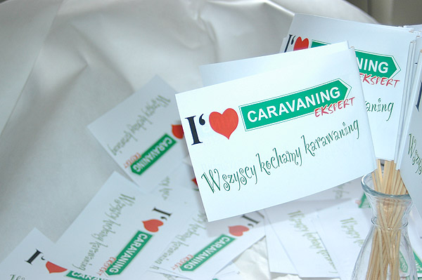 Ale póki co, to otrzymamy do zdobienia naszych kamperów takie oto chorągieweczki i możemy wyciąć plakietki z "Caravaning Ekspert".