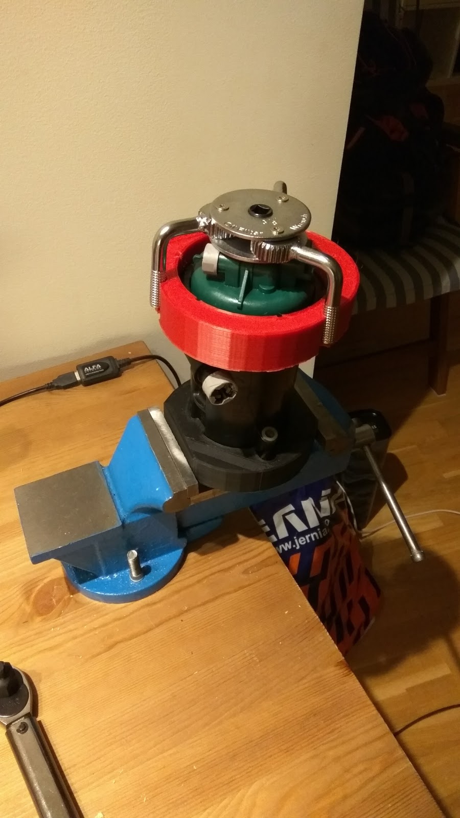 poprzedni właściciel przykręcił na maksa... powoli traciłem nadzieję na odkręcenie... w międzyczasie zamówiłem klucz na allegro do odkręcenia pierścienia -już go sobie przywiozłem... ale unieruchomienie obudowy i tak wymaga elementu który wydrukowałem, (ten czarny, w imadle - pisze bo może ktoś na nokii 3210 internet eksploruje )