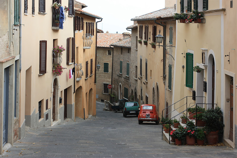 Na miejscu okazuje sie że nie ma gdzie w pobliżu zaparkować kampera a za parking dla kamperów położony kilka kilometrów od centrum chcą 1 Euro za godzinę. Rezygnujemy ze zwiedzania i jedziemy do Volterry. Po drodze mamy trochę ładnych widoczków.
