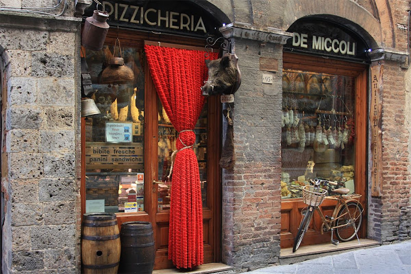 4. Oświetlenie. Starajmy się nie wykonywać zdjęć pod słońce. Jeżeli jest ciekawy obiekt oświetlony w ten sposób jedźmy zobaczyć coś innego a tam wróćmy o innej porze dnia albo następnego. Jeżeli fotografujemy krajobraz najlepiej jak dzień jest słoneczny. Jak fotografujemy miasta najlepiej jak jest pochmurno albo pada. Światło jest wtedy bardziej miękkie i nie ma efektu że np. kamienica na górze i niebo są prawie albo całkowicie białe a jej dół czarny bez szczegółów w cieniach. Jak zobaczycie na moich zdjęciach z Toskanii widać szczegóły we wnętrzach sklepów czy kawiarń. Tylko dlatego że było pochmurno albo zdjęcia były robione między 7 a 9 rano kiedy słońce jeszcze tak intensywnie nie docierało w głąb uliczek. W lecie niestety byłoby to między 5 a 7 rano.