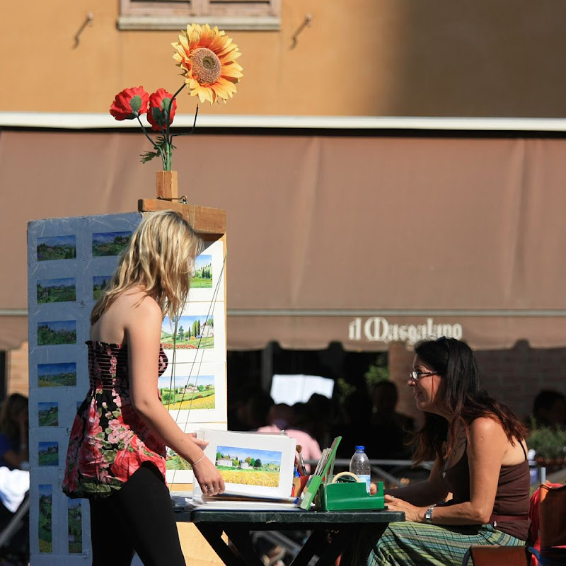 Mamy także okazję że podziwać proces tworzenia ulicznego obrazu - kopii Leonarda - bo tak o nim mówią we Włoszech.
