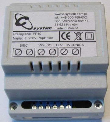 Maksymalny prąd przełączania 10A (tj. 2300W przy 230V) - dla wersji PP10
