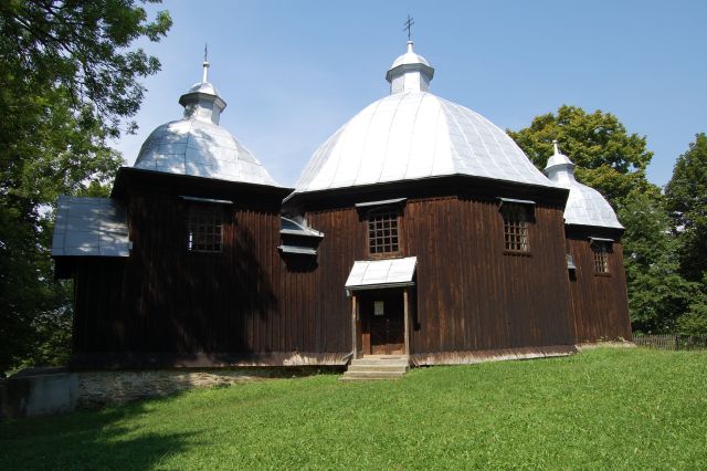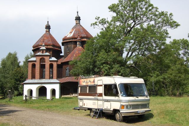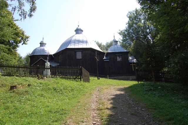 - Smolnik n. Sanem, cerkiew z 1791 r. Ponieważ cerkiew znajduje się na szczycie wzniesienia, z parkingu roztacza się wspaniały widok na okolicę. Z powodu usytuowania na odludziu można tam również przenocować. Z pewnoscią byśmy tak zrobili, gdyby nie nasze plany wędrówkowe. Następnego dnia chcieliśmy wejść na Dwernik Kamień szlakiem z Zatwarnicy.