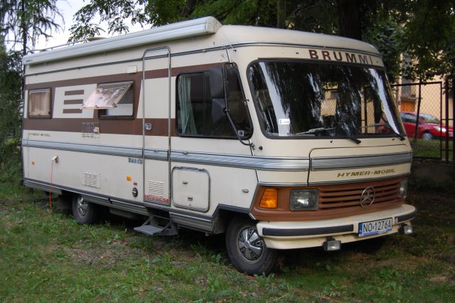 Jeszcze tego samego wieczora znaleźliśmy miejsce na kilka noclegów we wsi Dwernik "U Lestka" - cena z prądem 25,- zł. Następnego ranka ok. 5.30 rano zaczęło się. Otóż moja żonka jest wielką miłośniczką pieszych wędrówek po górach. W związku z tym, ja tęż muszę te wędrówki miłować. Na rozgrzewkę wystartowaliśmy (pieszo jakby co) do odległego o 2 km przystanku PKS. Następnie po ok. 30 minutach jazdy najgorszą drogą w we wszystkich RP do kupy wziętych (bez kitu, wygooglujcie sobie "droga do Zatwarnicy), dojechaliśmy do paczątku mojej martrologii. I tak oto, po 3 godzinach wczołgiwania się dotarłem na Dwernik Kamień (1004 m n.p.m.). Jeśli myślicie, że zejście było przyjemniejsze, to powiem tylko, że ja w tym przypadku wolałbym mimo wszysto jeszcze raz się wczołgiwać na ten szczyt. Nie bacząc na mój agonalny stan, żonka moja jeszcze postanowiła "po drodze" zaliczyć Przełęcz Przysłup. kolejne 3 godziny drogi. Na szczęście trafiła kosa na kamień. W drodze powrotnej i ona padła. Sprawiedliwości stało się zadość . Nasi gospodarze, jak usłyszeli ile tego dnia przeszliśmy stwierdzili, że już tylko leczenie nóg nam pozostało. Na szczęście jestem dobrym człowiekiem i Opatrzność czuwa nade mną. W nocy i następnego dnia zafundowała nam taką ulewę, że jakiekolwiek wyjście w góry okazało się niemożliwe. Nie chcąc tracić czasu postanowiliśmy zobaczyć Przemyśl. Po drodze zatrzymaliśmy się w nieznanym nam wcześniej Krasiczynie. Warto było. Po przyjeździe do Przemysla - niespodzianka! jedyny camping nieczynny! Postanowiłem, że zamieszkamy na jednym z dwóch istniejących parkingów strzeżonych. No cóż, jak każdy właściciel Hymera jestem na swój sposób inteligentny. Ale nie tylko ja tego dnia zdobyłem się na taki wysiłek intelektualny. Na parkingu nocował już jeden Hymer - zalączam fotkę, może znacie?