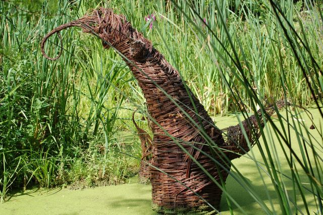 Po śniadanku i sympatycznej pogawędce z panią kasjerką rozpoczeliśmy zwiedzanie ogrodu. I tu wielkie zaskoczenie W ogrodzie stworzono ścieżkę edukacyjną dla niewidomych. Każda roślina jest opisana językiem Brail'a oraz do każdej z roślin poprowadzony jest sznureczek umożliwiajacy jej dotknięcie. Po za tym w ogrodzie znajduje się: labirynt wiklinowy, największa w Polsce kolekcja kosaćców (niestety ze wzgledu na pore roku nie mieliśmy okazji jej podziwiać) oraz najciekawszy naszym zdaniem dział roślin wodnych. Uroku dodają znajdujące się na terenie całego ogrodu wiklinowe postacie i ozdoby. Z dwóch planowanych wstępnie godzin spędziliśmy w ogrodze prawie pięć.