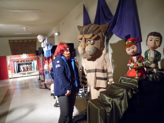 Sala z kukiełkami teatralnymi.