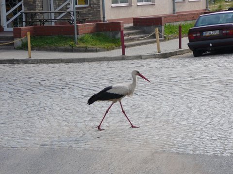 P1040487.JPG A w Tykocinie był miejski bocian znający przepisy drogowe |
