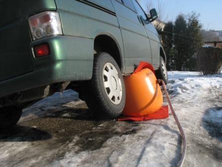 Po przygodach z wyciąganiem kampera "z bazin" na zlocie w Kazimierzu zakupiłem "Podnośnik aero poduszkowy na spaliny": http://www.allegro.pl/ite..._promocja_.html