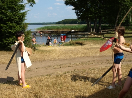 Dzielni rycerze Jagiełły spędzili noc po upalnym dniu nad jeziorem. Nam też upał dawał się we znaki. W porze obiadowej udało nam się znaleźć sympatyczne miejsce – kąpielisko pod Człuchowem nad Jeziorem Rychnowskim. Kąpiel w jeziorze, obiad, krótki relaks i w dalszą drogę.
